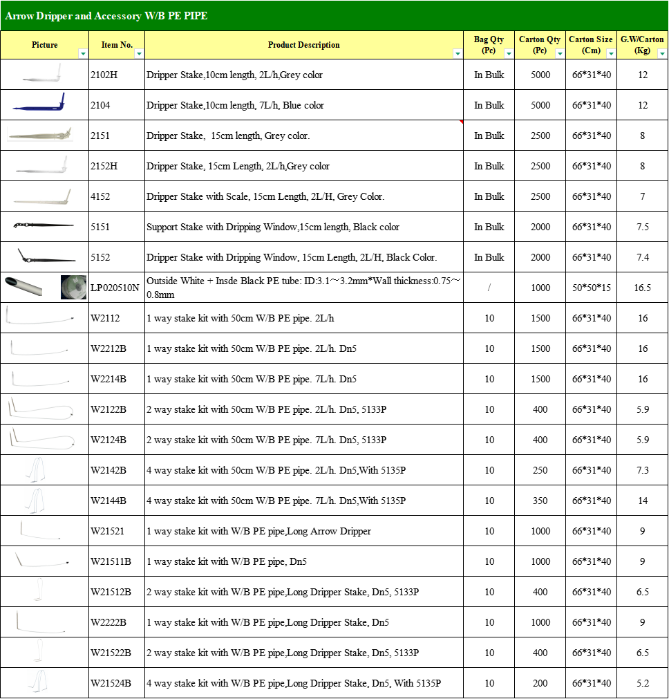 Mudah digunakan, pelepasan rendah dan titisan anak panah yang menjimatkan, sesuai untuk menyiram tanaman dalam pasu, diperbuat daripada bahan mentah berkualiti tinggi, perlindungan UV dan anti-penuaan, boleh digunakan untuk beberapa musim.
