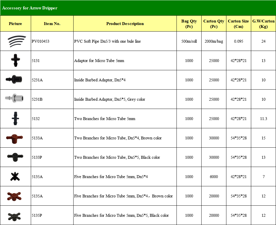 2. Arrow Dripper disambungkan dengan paip PVC lembut Dn5/3mm dan penyesuai, juga boleh disambungkan dengan pemasangan Multi-outlet untuk mendapatkan beberapa ou