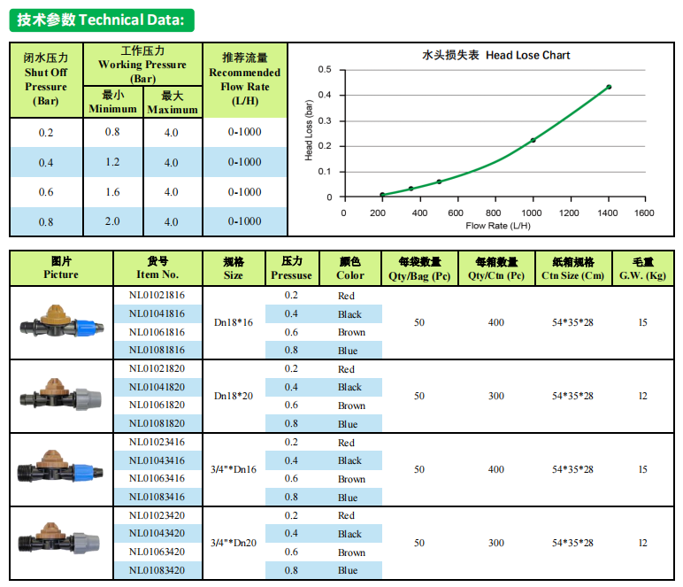 ·Berbilang tekanan pratetap tersedia, sesuai untuk sistem pengairan dengan keadaan kerja dan rupa bumi yang berbeza.