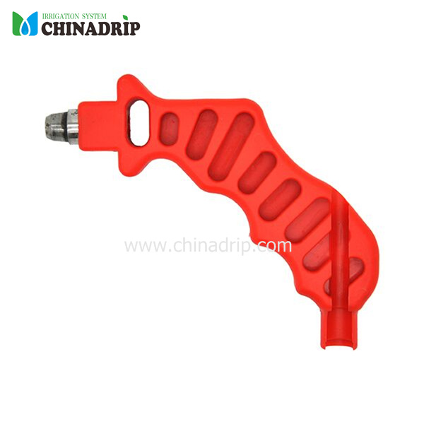 Untuk menggunakan penebuk Pemegang, mula-mula masukkan tiub poli ke dalam penebuk. Kemudian tekan pemegang ke bawah untuk menebuk lubang.