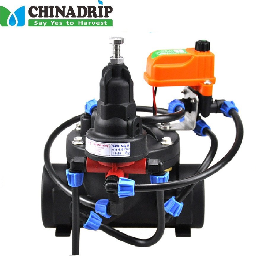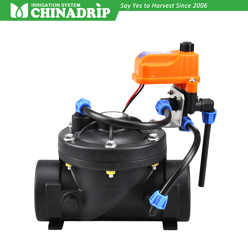 XIamenInjap Terkawal Solenoid ini dengan 3 hala CHINADRIP Plus Solenoid, ialah injap kawalan tergerak diafragma yang dikendalikan secara hidraulik dengan gelung kawalan Suapan & Pendarahan hidraulik dalaman. Solenoid Plus membenarkan buka, tutup atau kawalan automatik secara manual melalui isyarat elektrik.