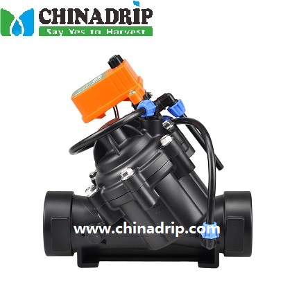 1Injap Kawalan Solenoid dengan Solenoid CHINADRIP Plus 3 hala ini, adalah injap kawalan tergerak diafragma yang dikendalikan secara hidraulik dengan gelung kawalan Suapan & Pendarahan hidraulik dalaman. Solenoid Plus membenarkan buka, tutup atau kawalan automatik secara manual melalui isyarat elektrik.