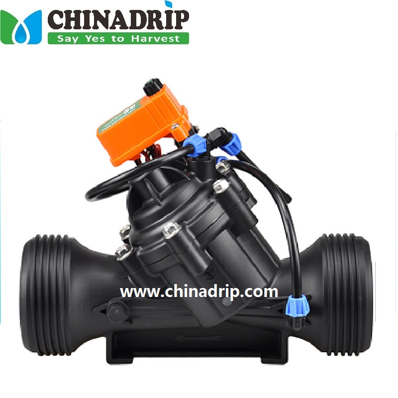 1Injap Kawalan Solenoid dengan Solenoid CHINADRIP Plus 3 hala ini, adalah injap kawalan tergerak diafragma yang dikendalikan secara hidraulik dengan gelung kawalan Suapan & Pendarahan hidraulik dalaman. Solenoid Plus membenarkan buka, tutup atau kawalan automatik secara manual melalui isyarat elektrik.
